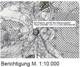 Die Berichtigung gemäß dem aufgeführten Bebauungsplanverfahren ist in den nachfolgend abgedruckten zeichnerischen Planauszügen dargestellt.
